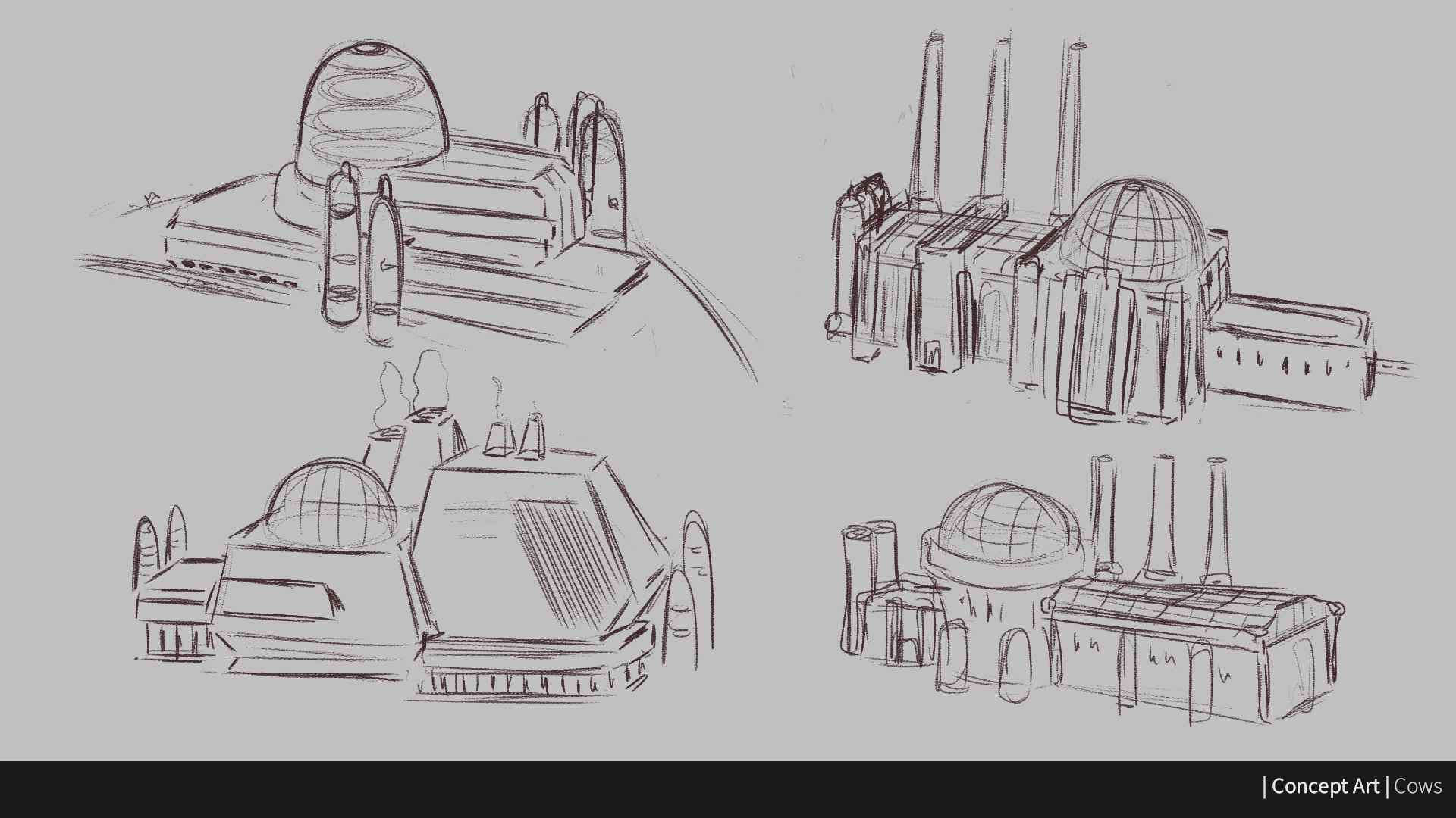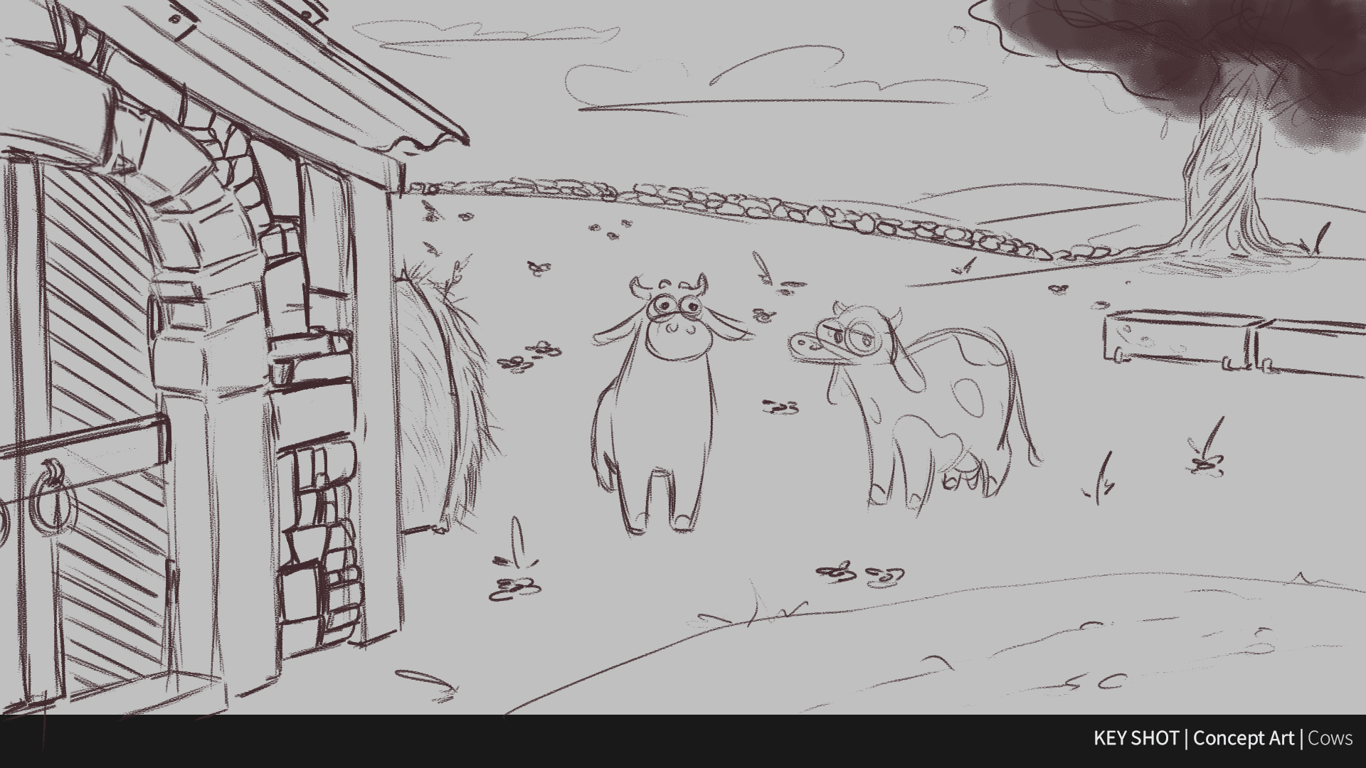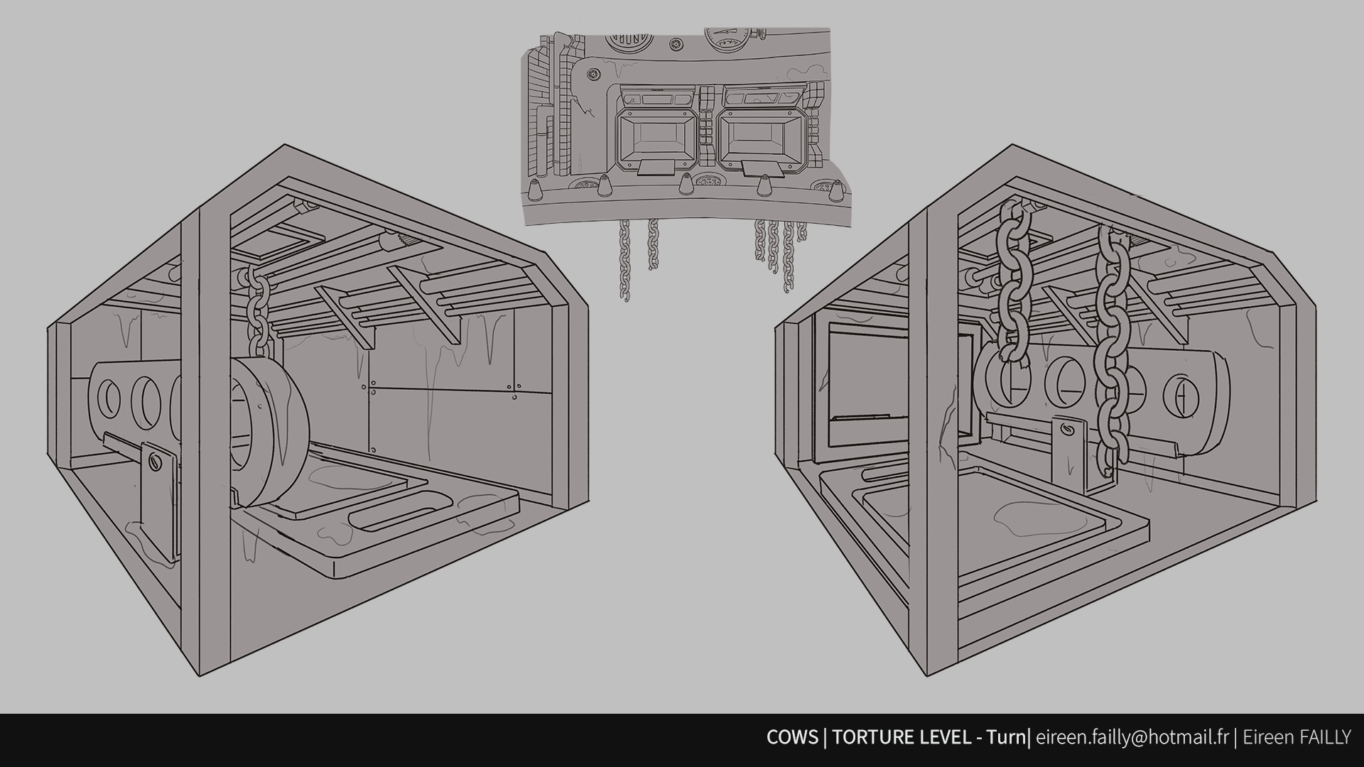 The first room we see inside the New Farm! It is a corridor that goes through the immense warehouse that will be our cow’s only way out later on. Though I didn’t design the corridor (Done by Yulia Nikitina), I coloured the final design.
